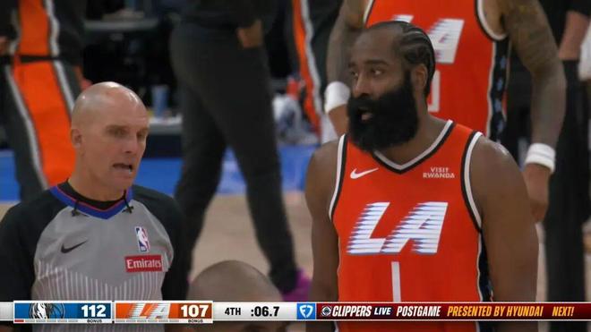 最终,随着哈登奋不顾身的上篮不中